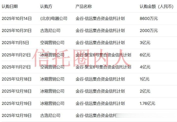 本次认购并非单笔交易,而是多公司、多批次的操作。为清晰展示其结构,信托圈内人汇总了主要认购情况如下: