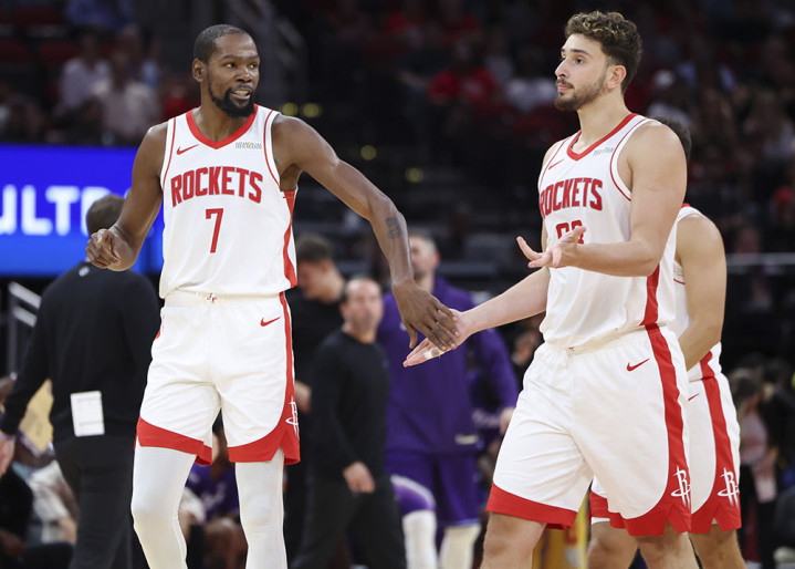 当然也与年轻球员的进步有关,申京全面进化,赛季至今他场均能得到23.0分10.3篮板7.4助攻1.3抢断1.0盖帽,除了篮板跟上个赛季持平外,其余四项数据均创造了生涯新高纪录。阿门汤普森场均能贡献17.3分6.1篮板5.2助攻1.3抢断0.5盖帽,得分和助攻迎来生涯新高。类似情况的还有谢泼德,他场均能拿到生涯新高的12.6分,外加2.7篮板3.1助攻,场均三分命中率高达47%。综上我们能够下结论了,火箭本身就很坚韧,杜兰特则是注入了灵魂。
